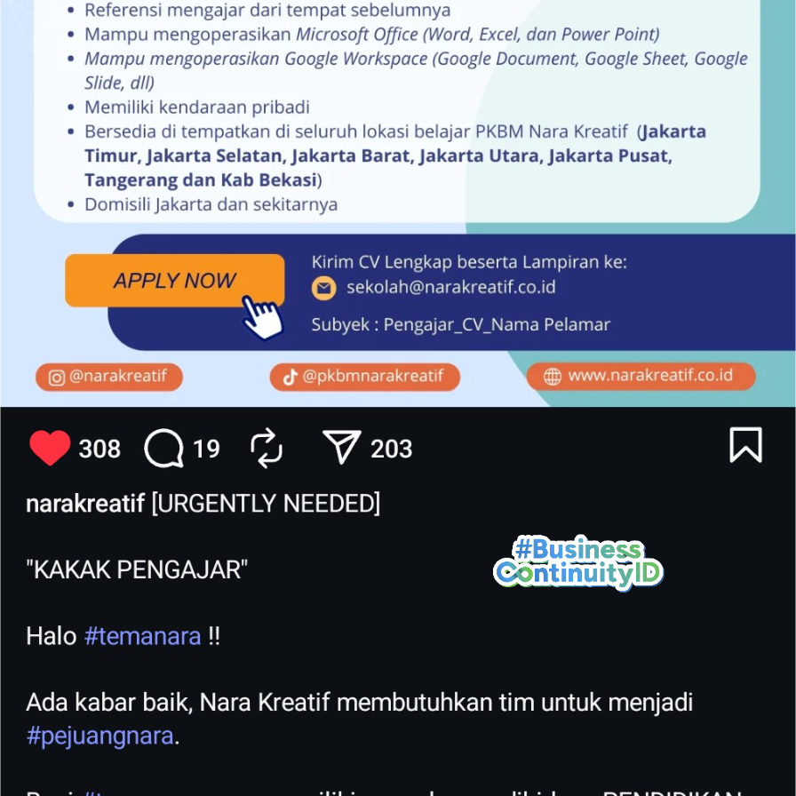 ♾️ Action 1 of 2 - Nara Kreatif bersama Andien Aisyah sejak ...#BusinessContinuityID